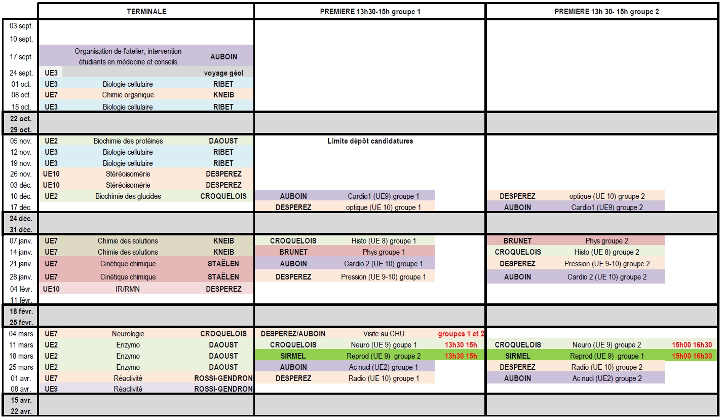 Planning de l’atelier "Pass-véto" 2025-2026, le mercredi de 13h30 à 15h30